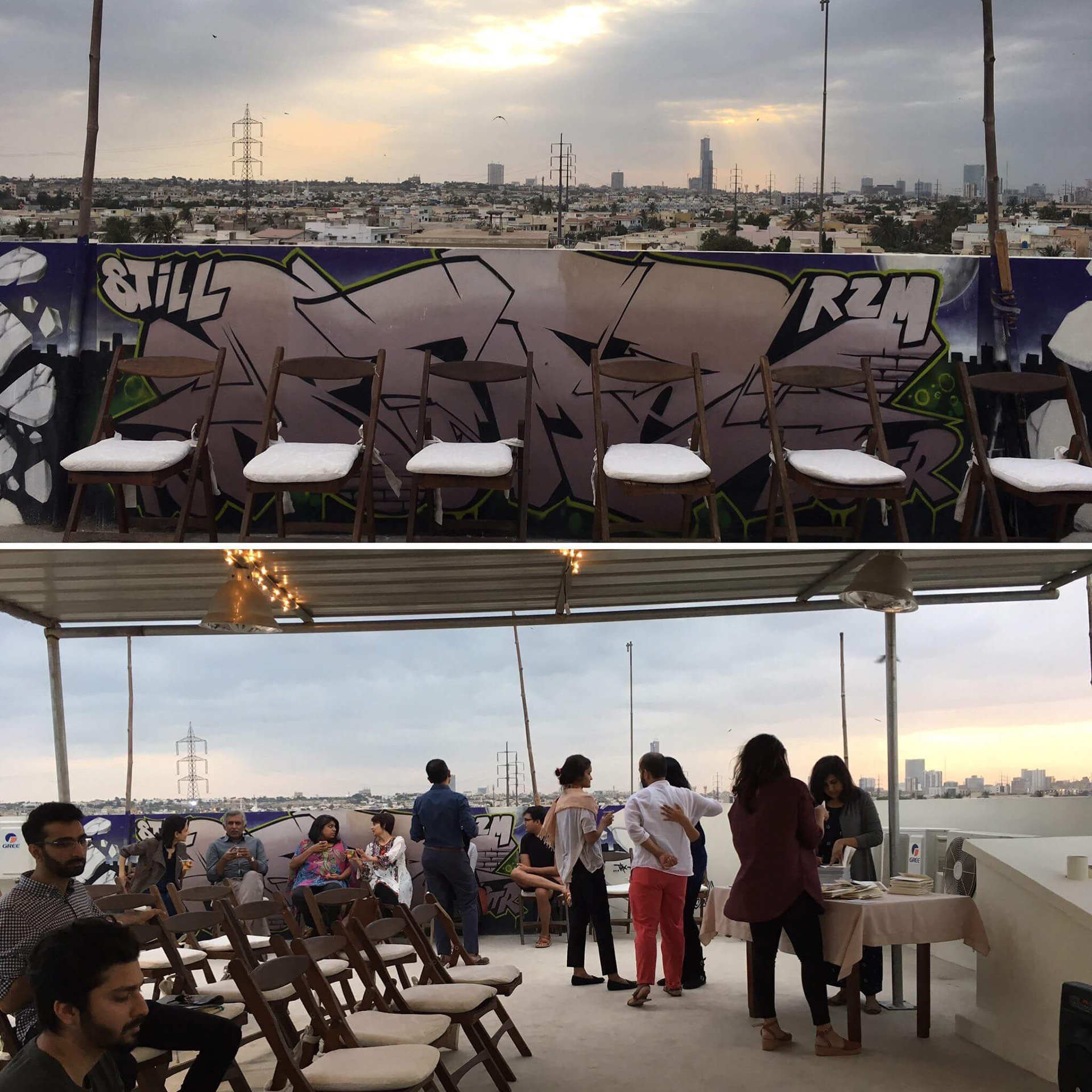 Launch Event on the Vasl Artists' Collective Rooftop with a Lecture/Performance by Zahra Malkani and Shahana Rajani.